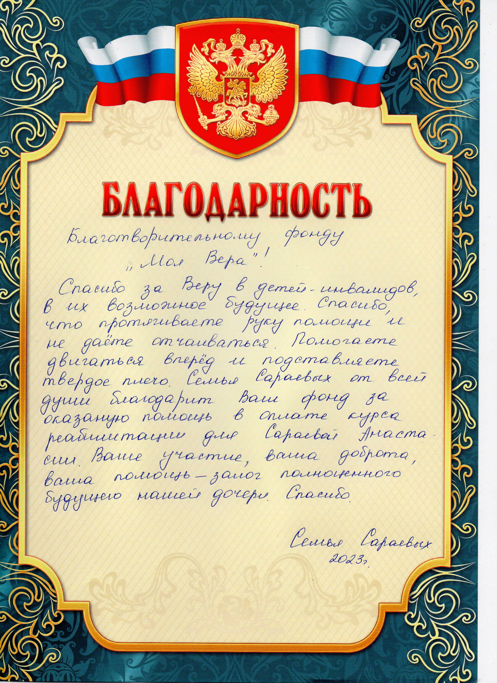 С Уважением, Благотворительный фонд помощи «Моя ВЕРА»